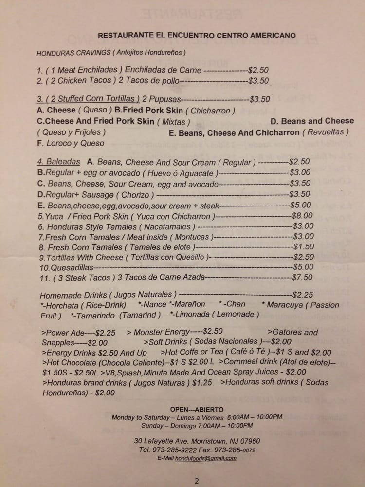 El Encuentro Centro Americano Restaurant Menu (Update 2025)